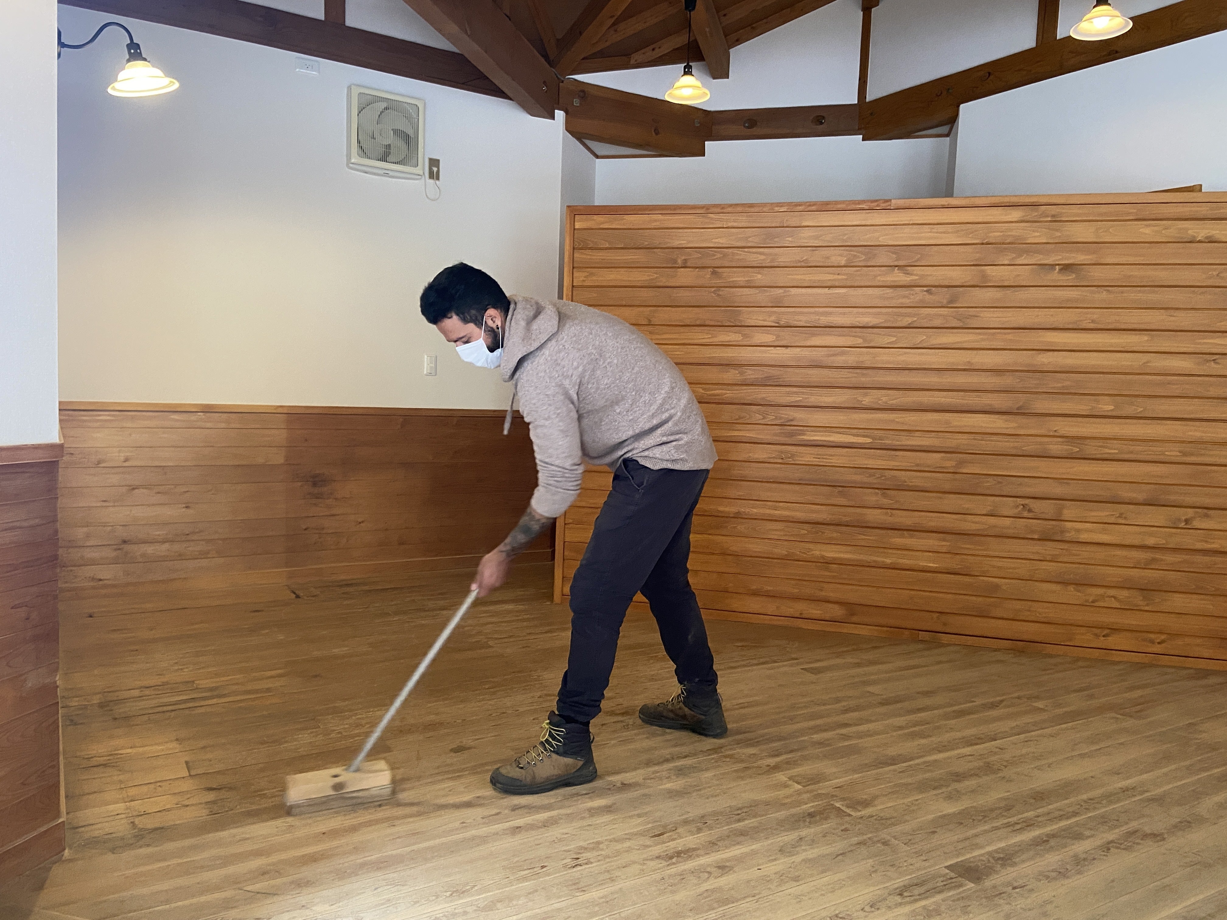 まずは中の床。そして壁。業者にはお願いしなかった部分ですが、やはり経年劣化を感じる場所。