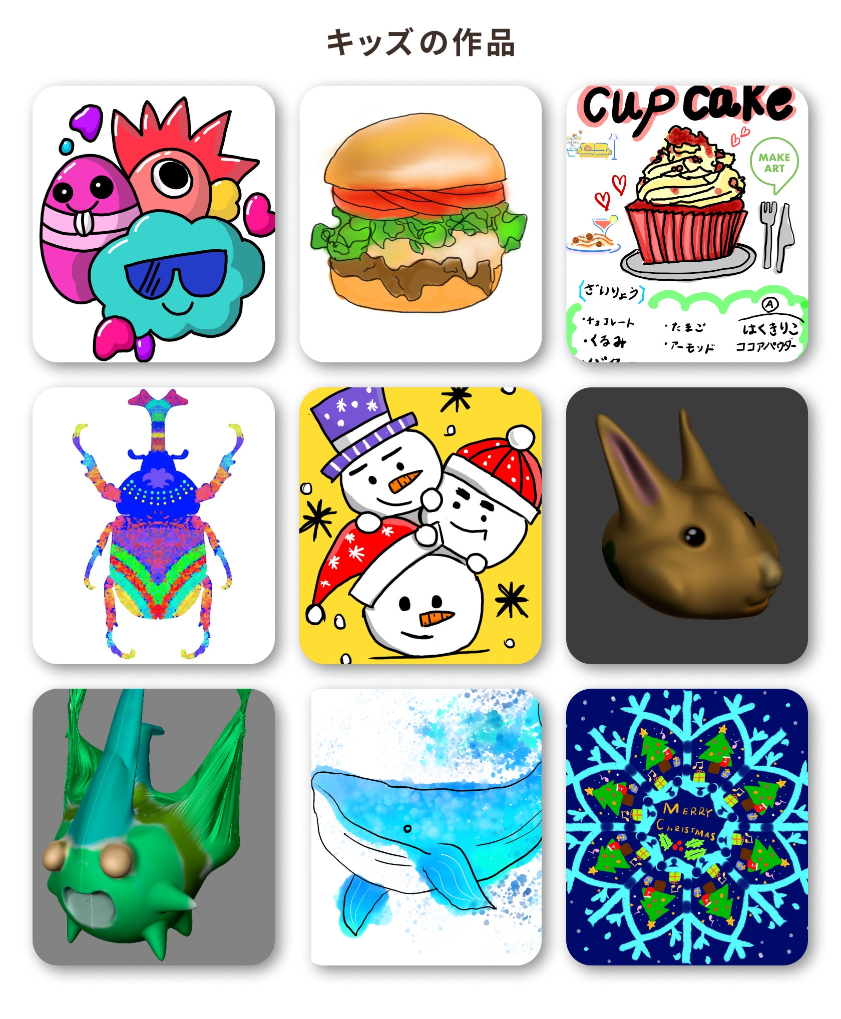 子ども向けには のびのびとiPadが学べる空間を。 iPadが「動画視聴やゲームをするだけの板」に ならないように、iPadでなにかを創作したり アイデアの表現に活用したり、 無限の可能性を発見できる授業にします。