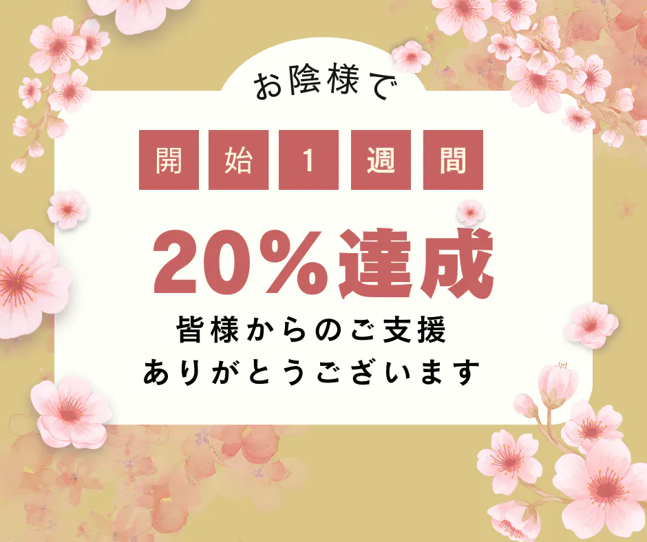 お陰様で、開始1週間で目標金額の20%達成できました。