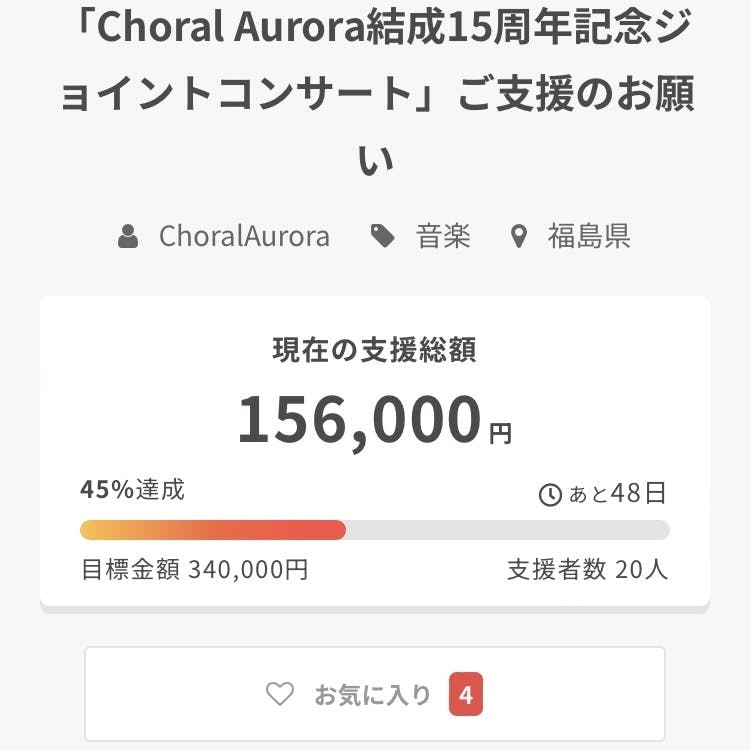 これまでで達成率45%(前回+7%)、ご支援も20名の方からいただくことができました。