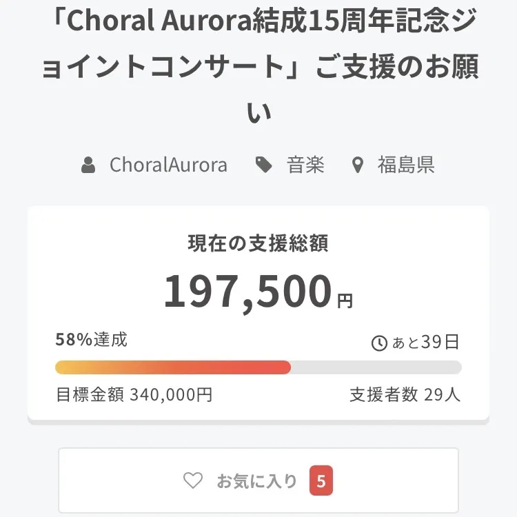 今回はとてもありがたいことに達成率58%(前回+13%)と多くの皆さまからご支援をいただくことができました!本当にありがとうございます。期間後半もますます頑張っていきます!!
