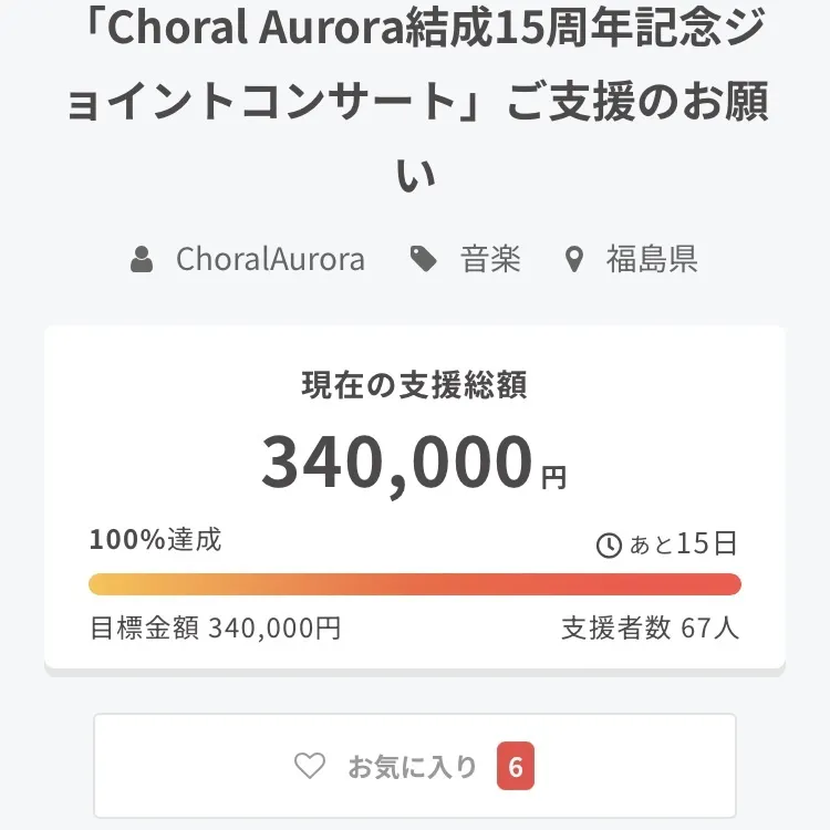 昨日、達成率100%、目標額を達成することができました!本当にありがとうございます。