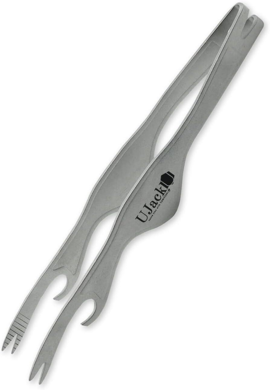 豚の脚を模して造られた二股に分かれた先端は、トング本来の「掴む」だけでなくフォークのように「刺す」も同時に行うことが出来、親指の部分では鉄板などを「持つ」クッカークリップとしても使える1本で3役の万能トングです。