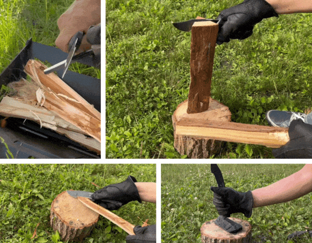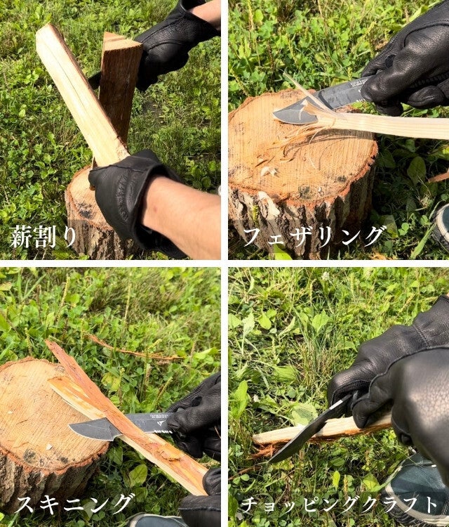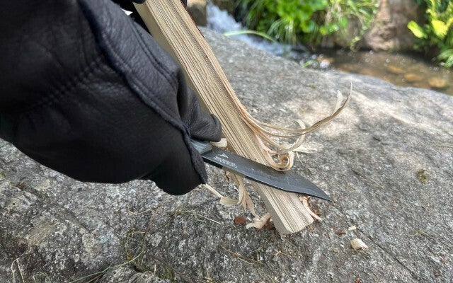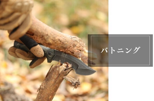 斧ではむずかしい薪を細く割る作業や、狙った箇所で割ることができるバトニングはブッシュクラフトには欠かせません。