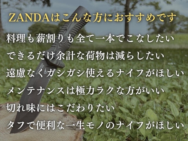 ぜひ皆さまにも「ガシガシブッシュクラフトを楽しめる一本」としてZANDAを活用いただければそれに勝るものはありません。
