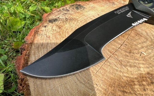 ZANDAのブレードはハードなバトニングもこなせる厚さ4mm。HRC(硬度)59のマルテンサイト+ブラックウォッシュ仕上げのブレードはサビにも強くメンテナンス性にも優れます。