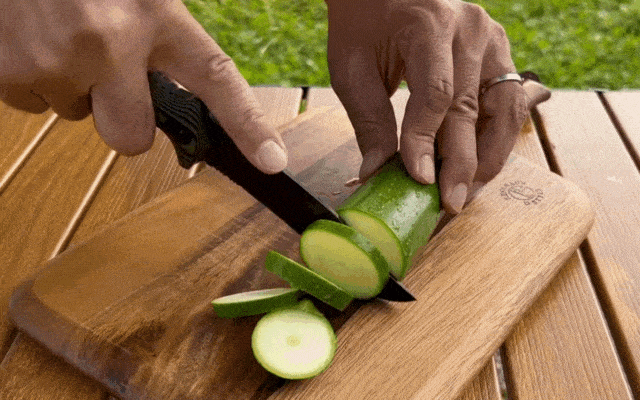 フラットグラインドを採用したZANDAは調理用ナイフとしても切れ味充分。