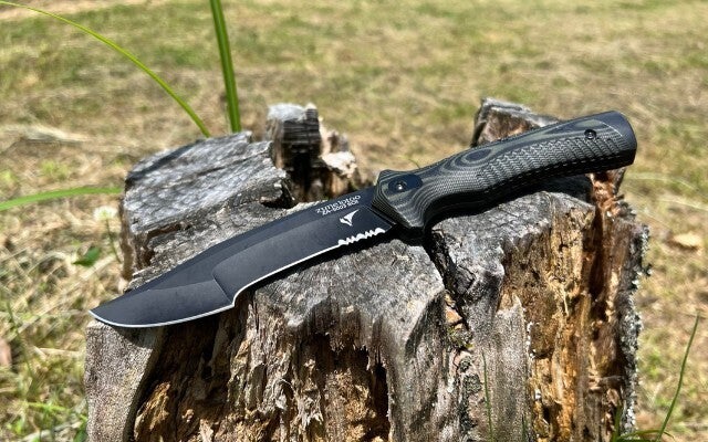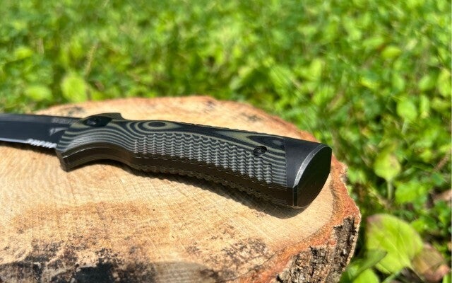 フルタング構造+G10ハンドルの高い耐久性に加え、ブラックウォッシュ加工は小さなキズも目立ちません。