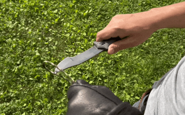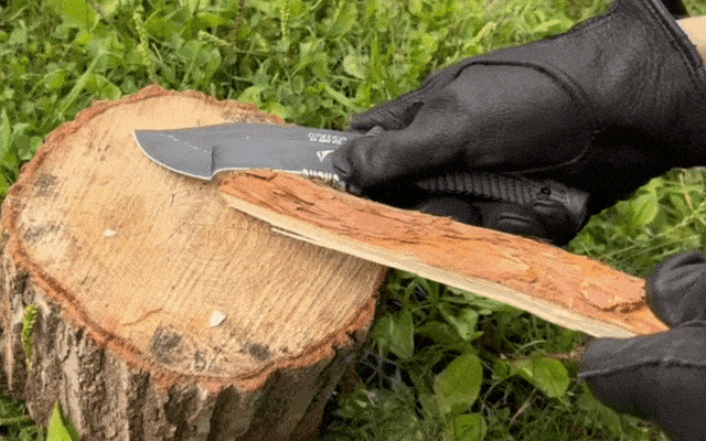 引く力を利用する返し刃は力が入りやすいというだけでなく、岩場やコンクリートといった場所でもブレードを傷めることなくフェザリングやスキニングが可能です。