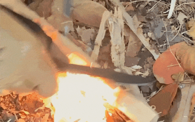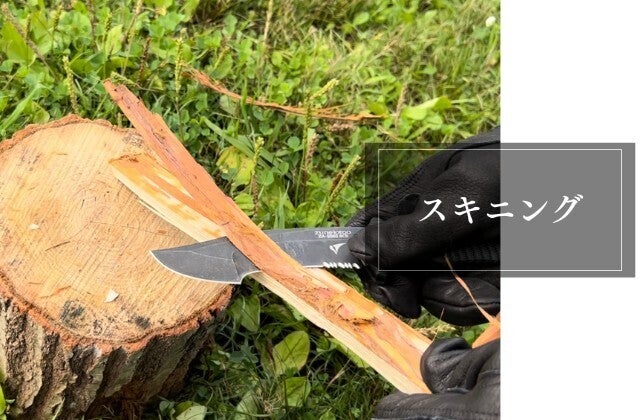また刃が内向きの弧を描く返し刃は、丸みのある薪の表面にフィットします。そのため皮をはぐスキニングも返し刃を使うことで容易になります。