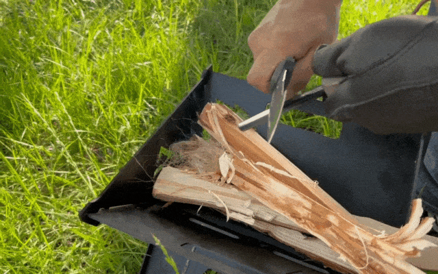 加えてブレード背面のスパインは火起こしの際のストライカーとして活躍。着火の際、メタルマッチを擦ることで大きな火花を発することができます。