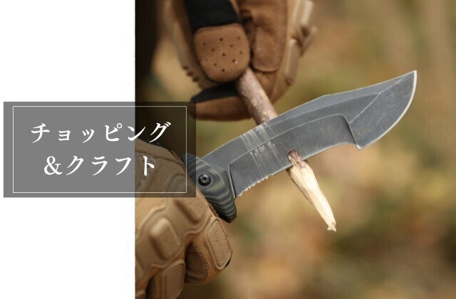 薪を割る、枝を切る、木を削る、叩くなど、一般的な刃物とはまったく異なる使い方をするブッシュクラフトに求められるのは何よりタフさ。