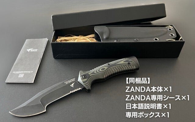 特殊な形状のブレードに対応したZANDA専用シース(鞘)も付属。カイデックス製のシースは軽くて丈夫なだけでなく、防水性にも優れています。