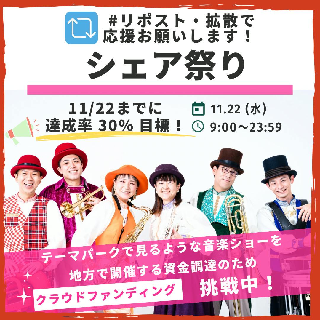 Twitter、Facebook、Instagramの決められた投稿を同じタイミングで可能な限り多くの方にリツイート・シェアいただくことで、一極集中して情報拡散するSNS上のキャンペーンです。