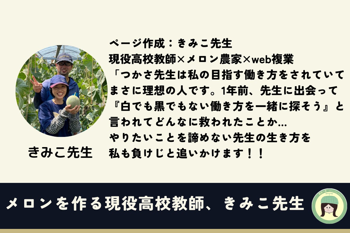 みなさん、こんばんは。今日もたくさんの方にご支援いただき、本当にありがとうございます。中にはInstagramやXで情報をシェアしてくださる方もいて…「支援の形ってお金だけじゃないよな!」と僕自身、勇気づけられる毎日です。みなさん本当にありがとうございます。今回の僕の挑戦は、正直…お金目的ではありません。そのため、現在目標金額は達成しているものの『第二のゴール』設定はしないつもりです。(多くの挑戦者はストレッチゴール『第二のゴール』を設定するようです)お金じゃないので、次の目標金額がない…というのが正直な所。でもたくさんの人に僕の取り組みを知ってほしいし、みんなで教育万博を盛り上げたい!そのための活動は今後も続けていくつもりです。さて、今日は教師のバトン第3弾です。第1弾が写真を撮ってくれたMASSAN、第2弾が動画を作成してくれた金澤先生、そして第3弾が…このクラウドファンディングのページを作成してくれたきみこ先生です!きみこ先生はなんと!メロンを作る高校教師。僕が最初に出会ったときには「メロンを作り続けるためには教師を辞めようか…」と道を迷われていました。色々と話しをする中で、教師を辞めるor辞めないの二者択一ではない生き方を探してみよう!となり、今に至ります。きみこ先生のメロンは農薬を使わない手法で作られていて、メロン特有のイガイガする感じが全くありません。きみこ先生の作った川辺メロンを食べましたが、とってもみずみずしくって甘くて美味しかったです!娘がパクパク食べてました。きみこ先生のメロンは、クラウドファンディングでしか購入できません。2024年も挑戦するようなので、ぜひみなさん支援しましょう。*今年の挑戦ページはこちらです。僕の挑戦には本当に素敵な方々が協力してくださっています。みんな先生!ってところも、この挑戦のすごいところ。僕はとっても幸せだなぁ~と思います。まだまだ頑張ります!教育王に俺はなる!現役小学校教師、ルフィ先生ことつかさ先生でした。またね~