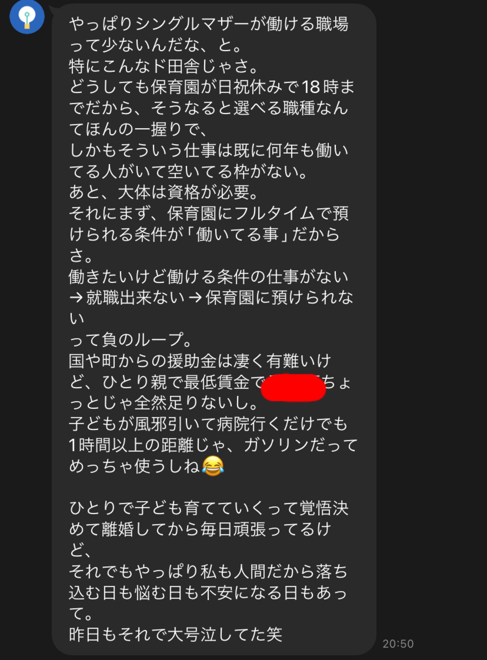 シンママももちろんですが、家族の介護のため、自身の健康上の理由のため、様々な理由でこの町に住んでいる若者や同世代はたくさんいます。