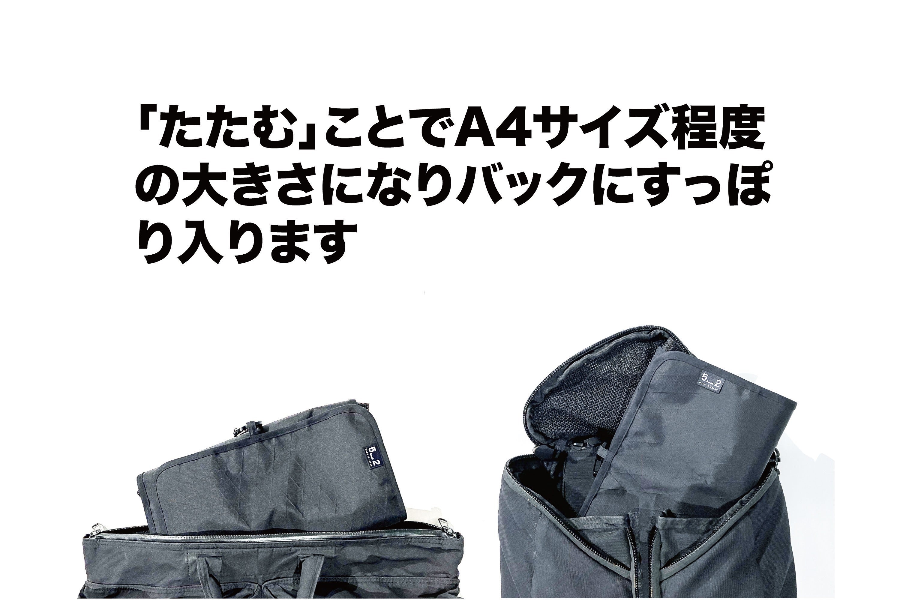 移動時は収納したままたたんでA4サイズ程度のクラッチバックとしてもご使用いただけます。