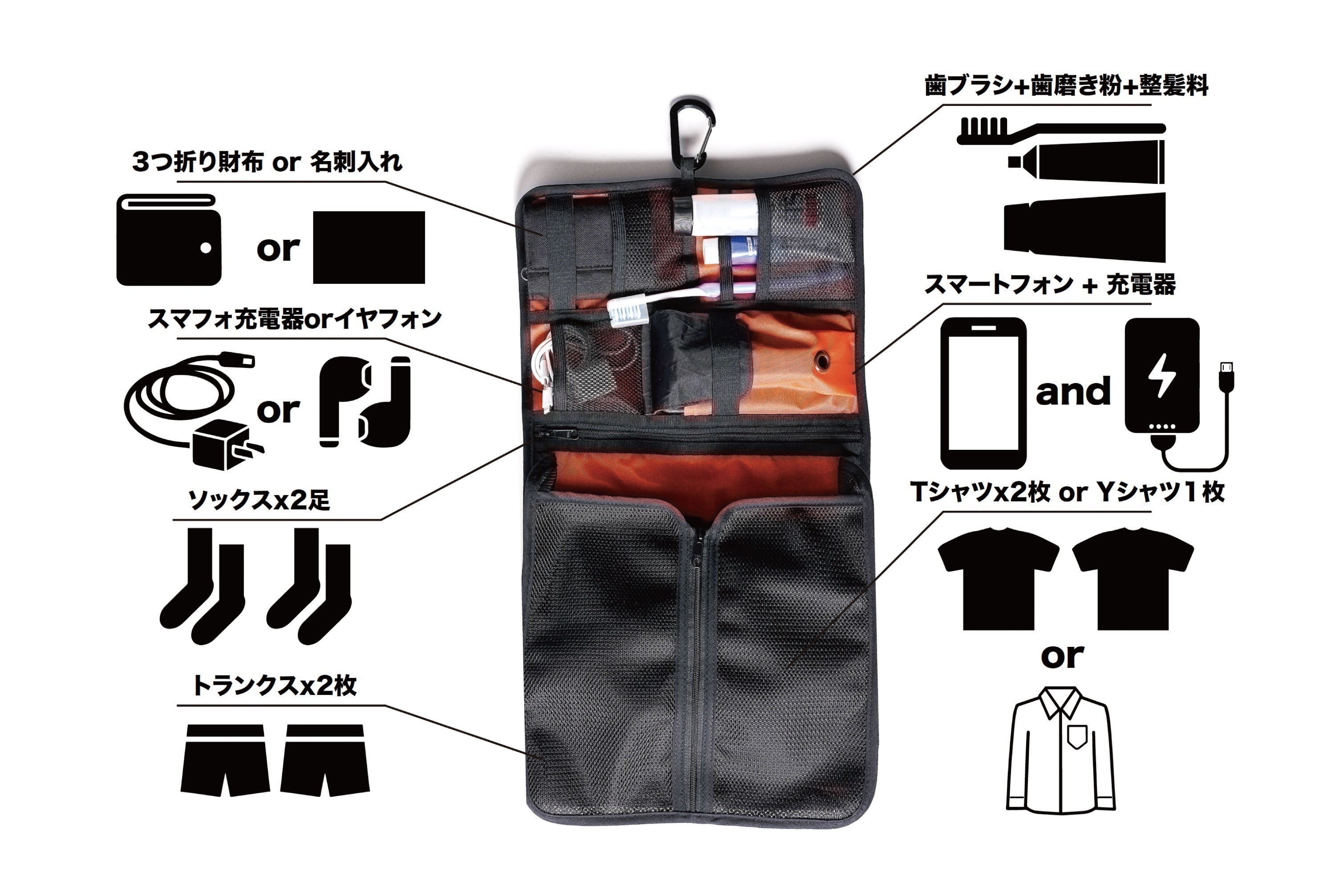 【ビジネスの出張や旅行そしてアウトドアーで2泊分の必需品がこれ一つに整理できます!】