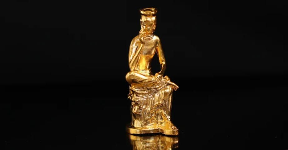 弥勒菩薩(みろくぼさつ)は未来を見つめる。【純金の弥勒菩薩像】が発売中。