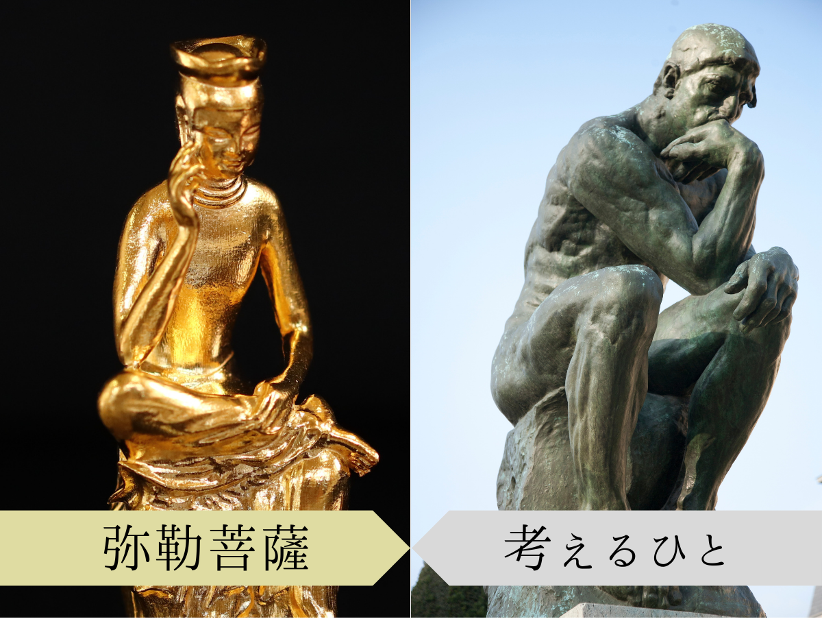 広隆寺の宝冠弥勒は、その姿が「ロダンの考える人」に似ていることから、東洋の詩人という愛称をもちます。