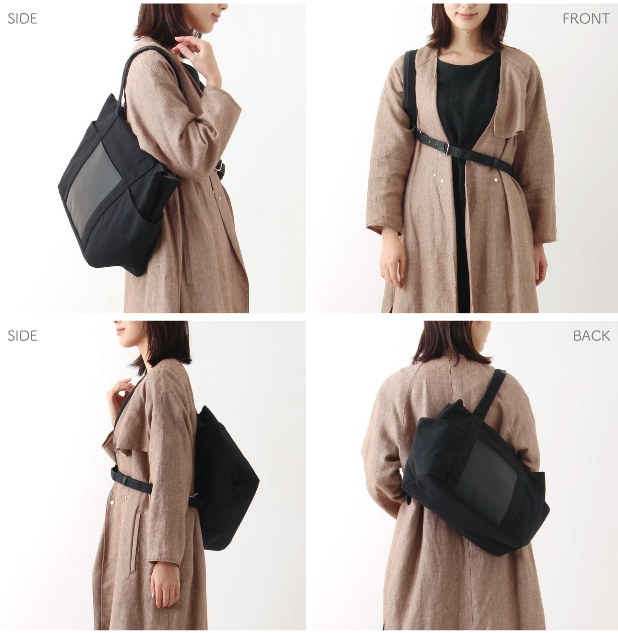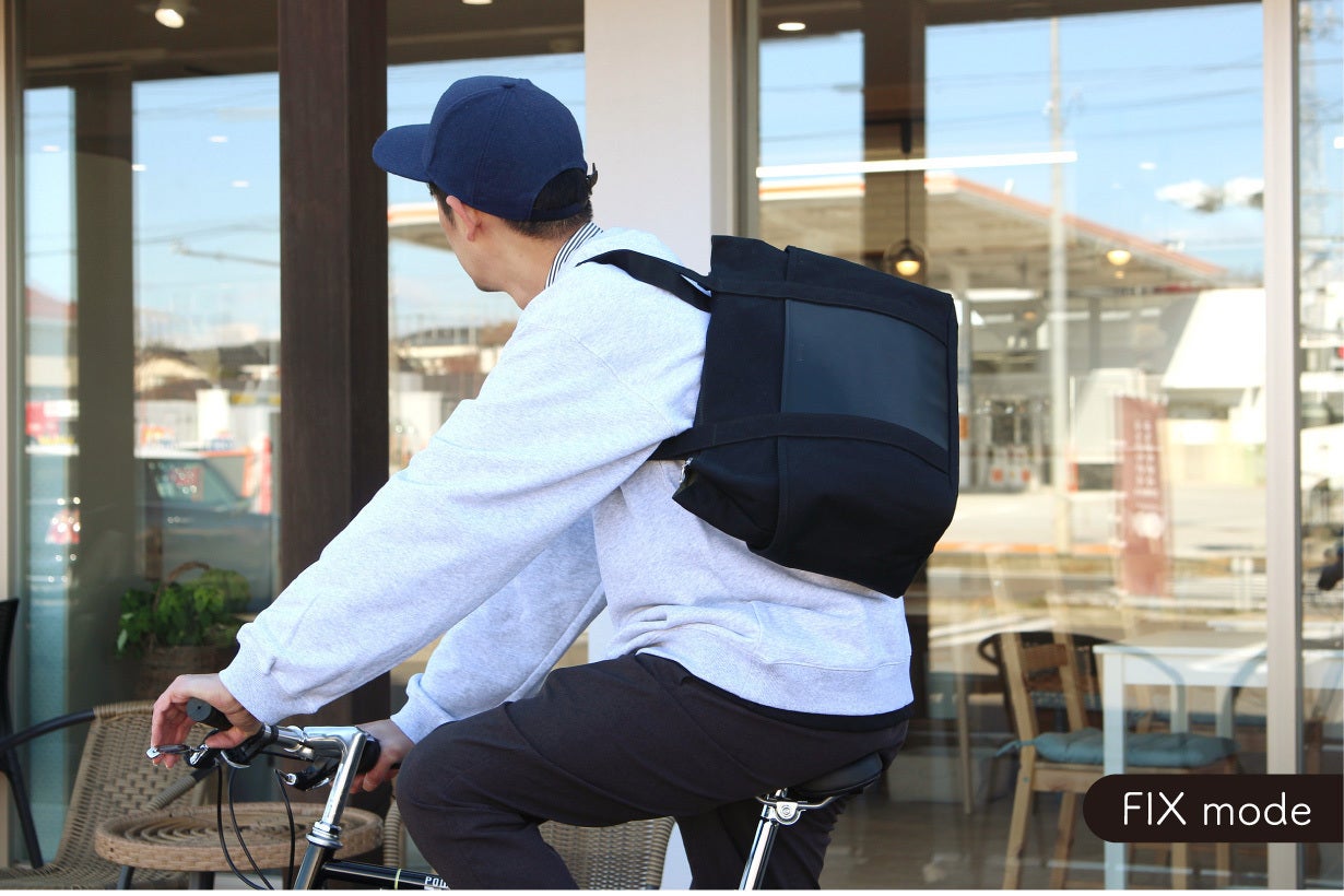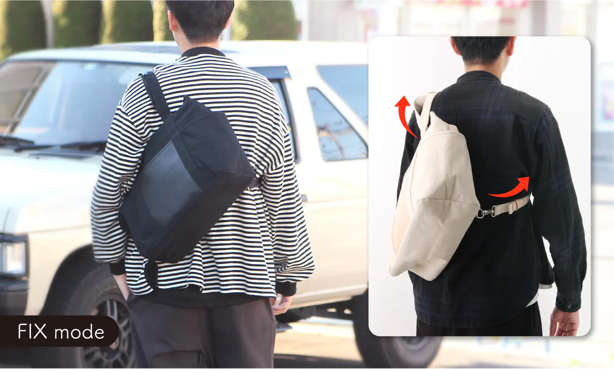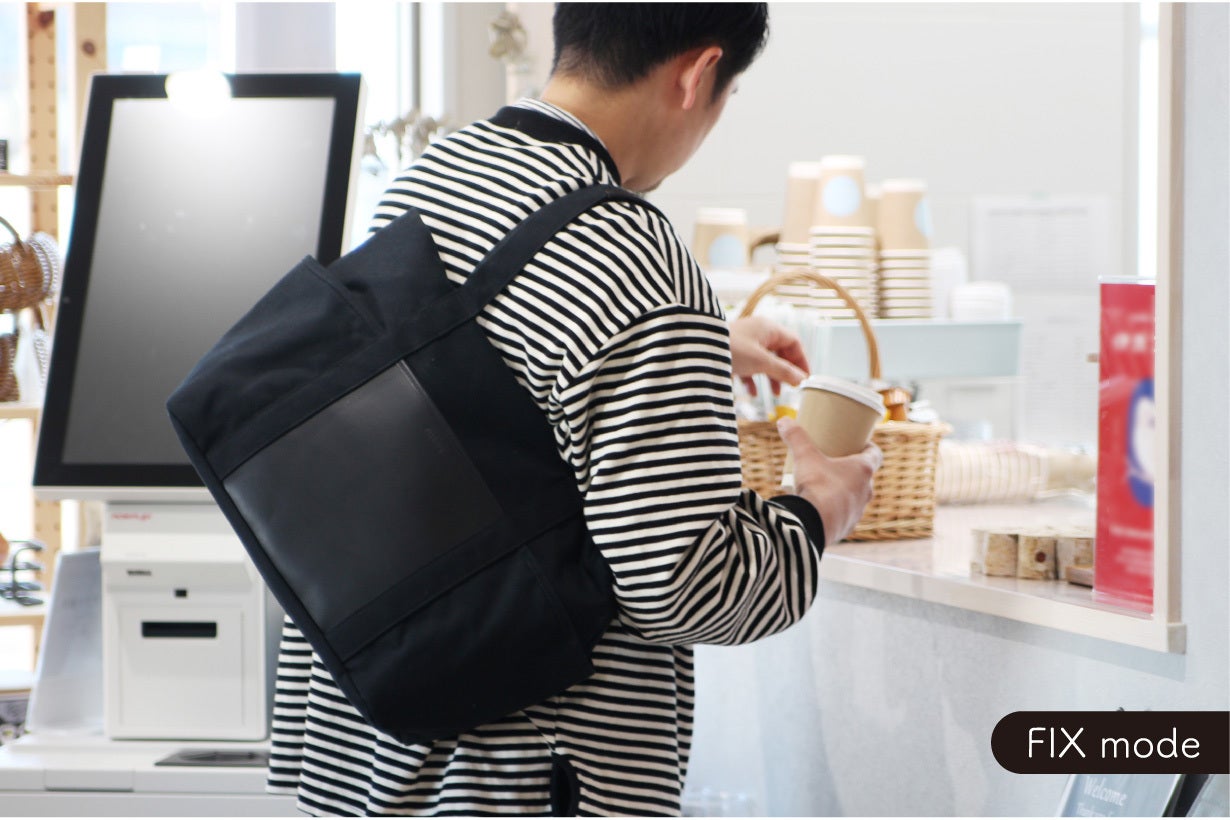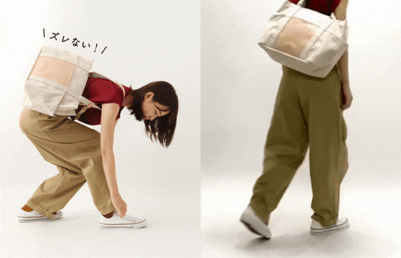 8カ国で特許を取得した独自開発のストラップでバッグを背中にしっかり固定できるので、トートバッグの形のまま、リュックのように使用することができます。