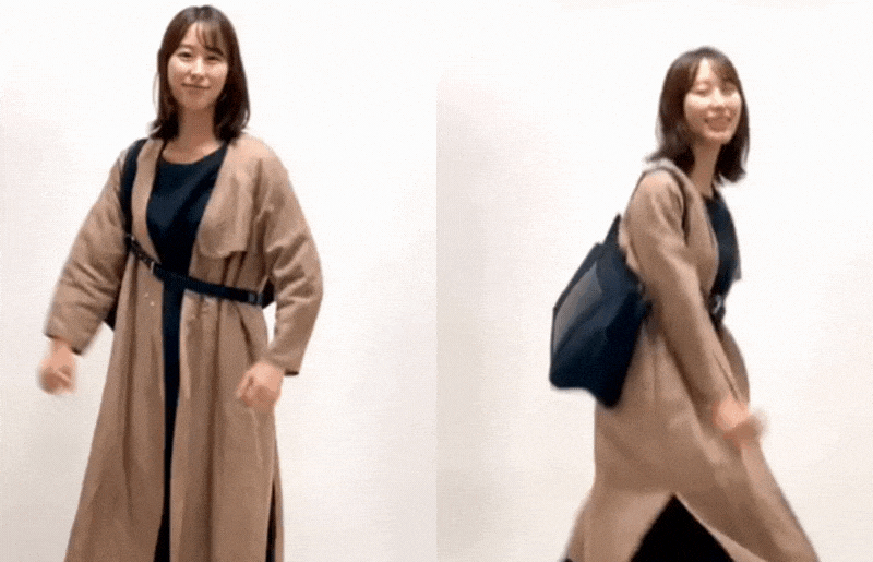 こんなに動いてもバッグはズレません!なで肩の方にもオススメです。