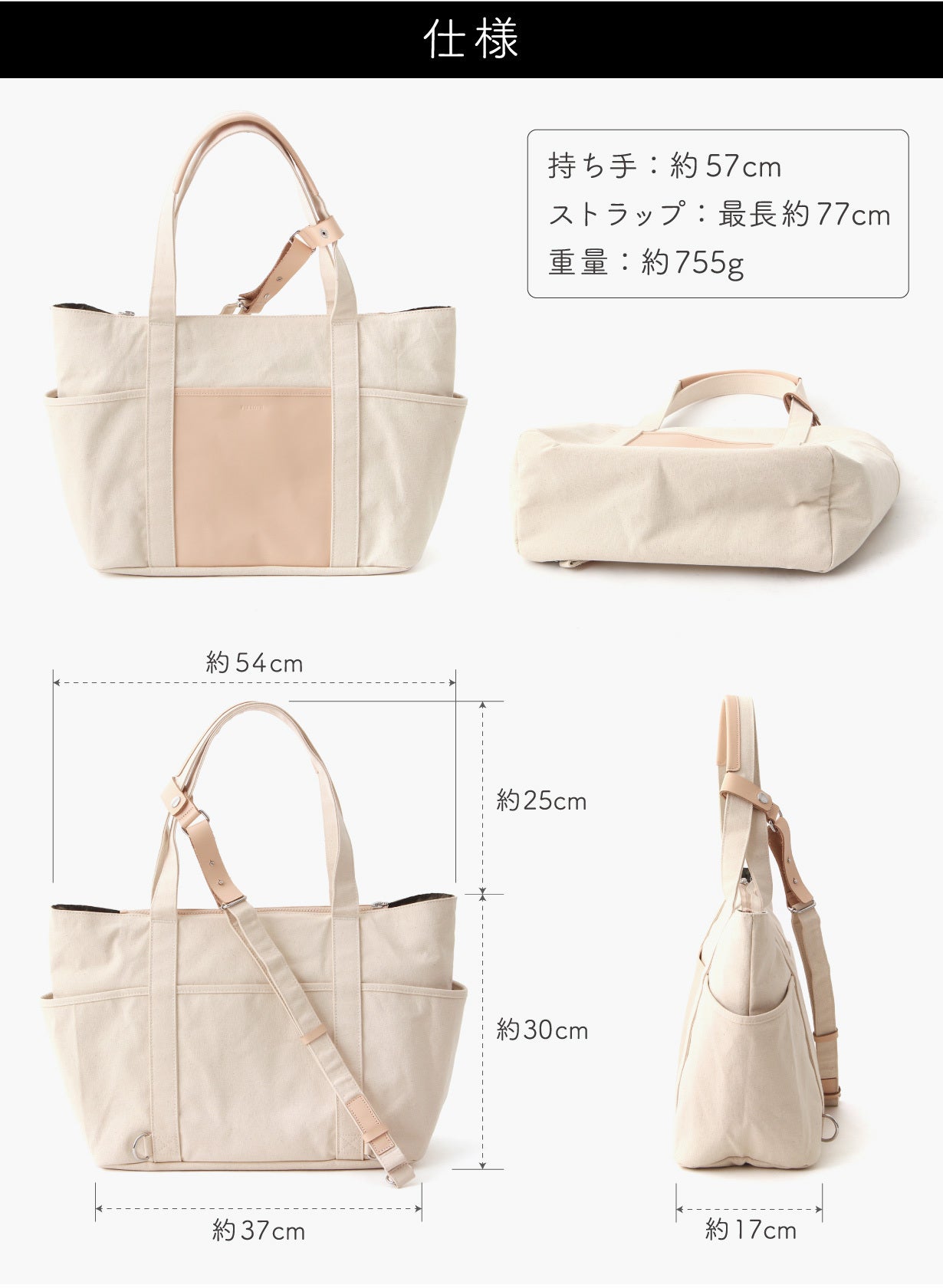 ■材質:【アウター生地】キャンバス、牛革