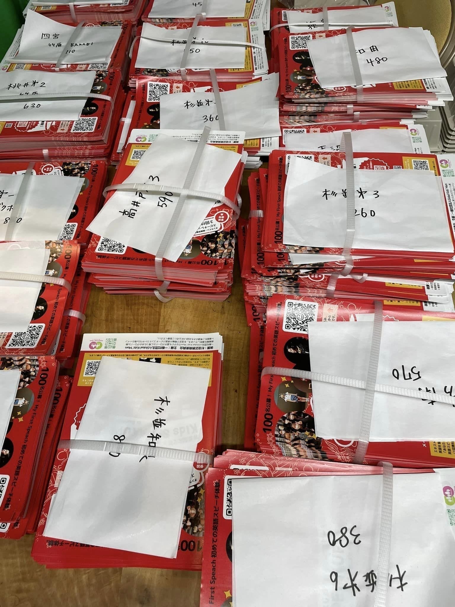 そしてその場でクラス枚数毎に分け、各クラスのラックにポスティングさせて頂く。