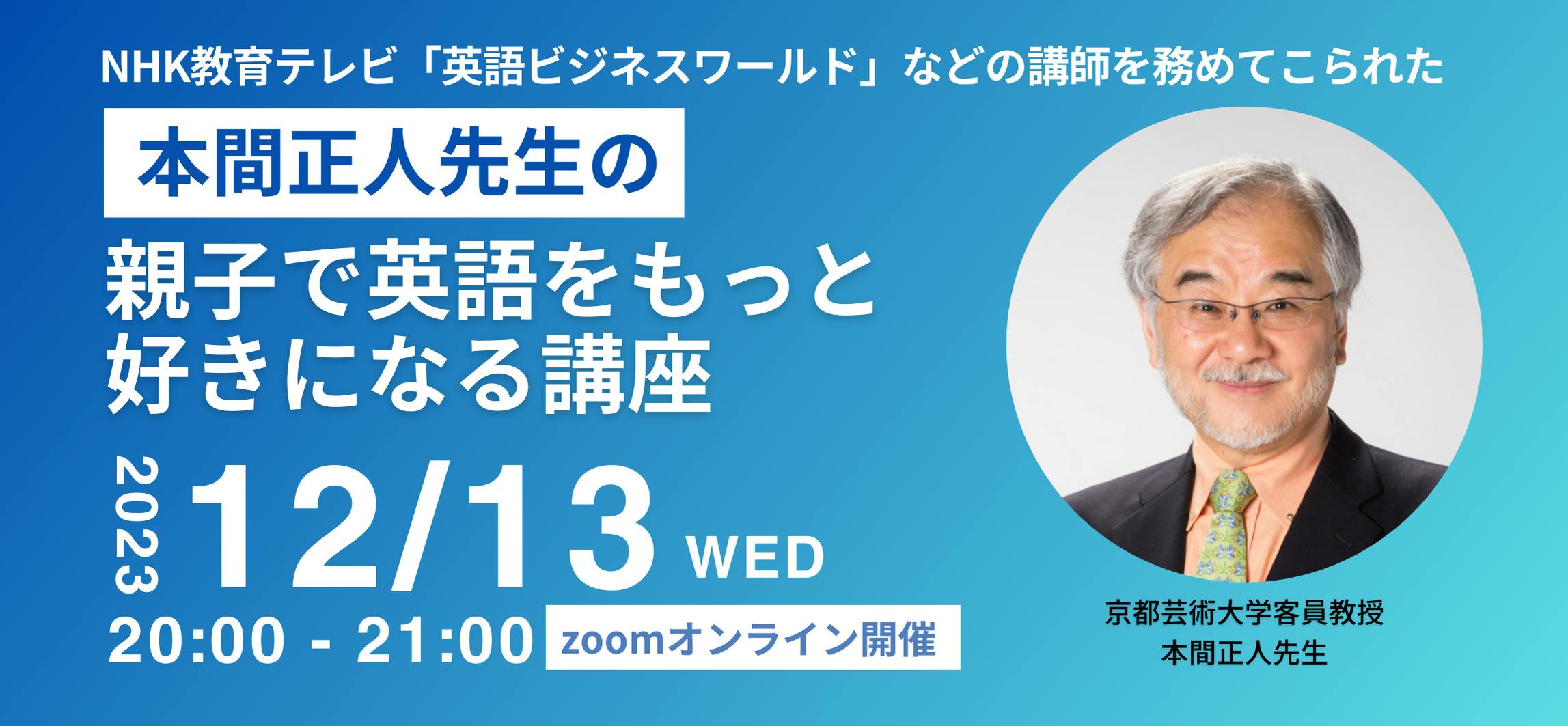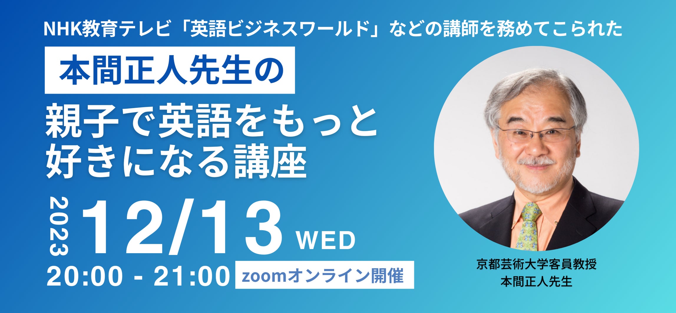 リターンに日本におけるコーチングの第一人者であり、NHK教育テレビ「英語ビジネスワールド」などの講師を務めてこられた本間正人先生(京都芸術大学客員教授)の本間正人先生の≪親子で英語をもっと好きになる講座≫を追加しました!