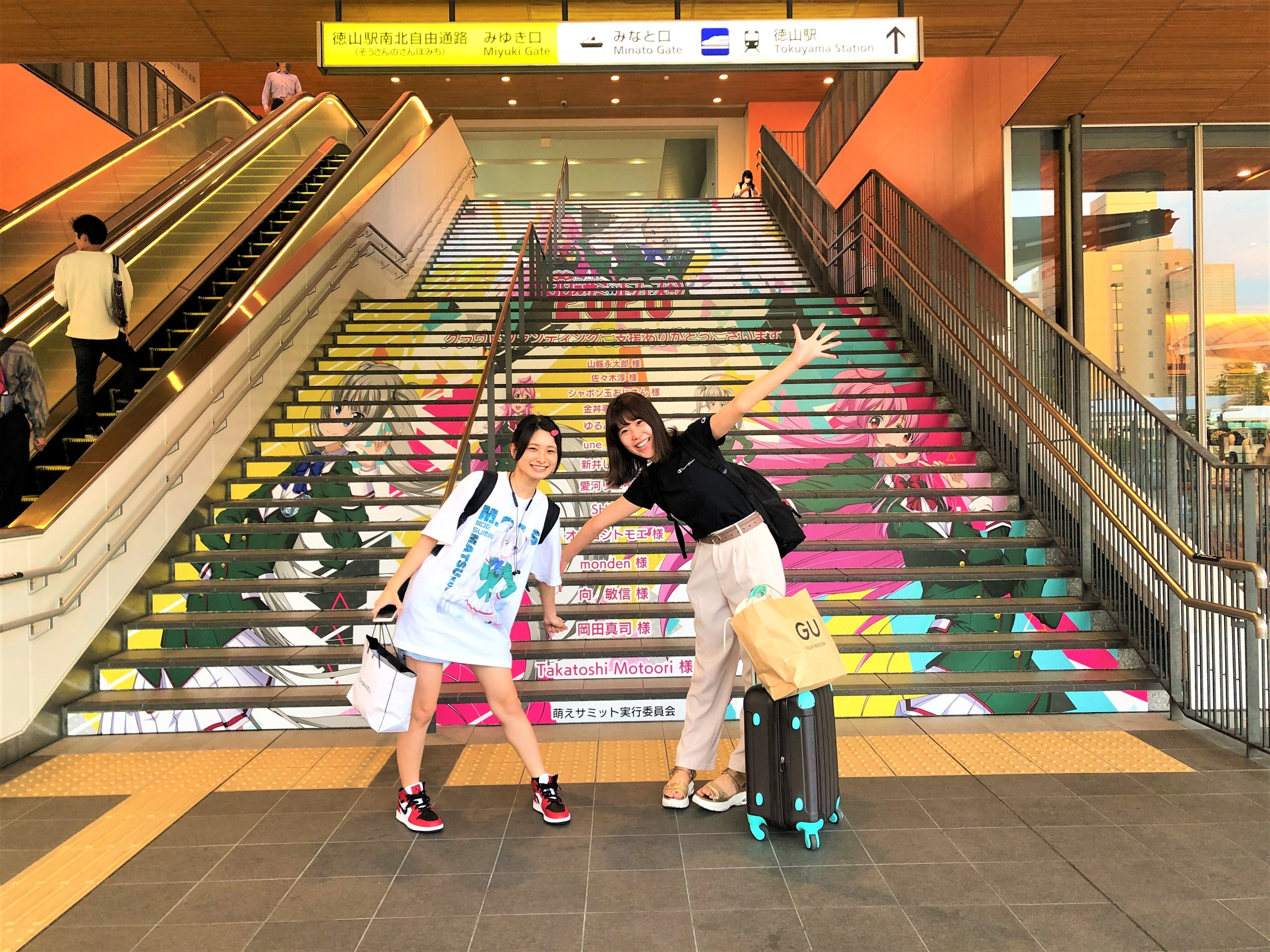 徳山駅の階段を目を輝かせて降りてくるお客様の笑顔。