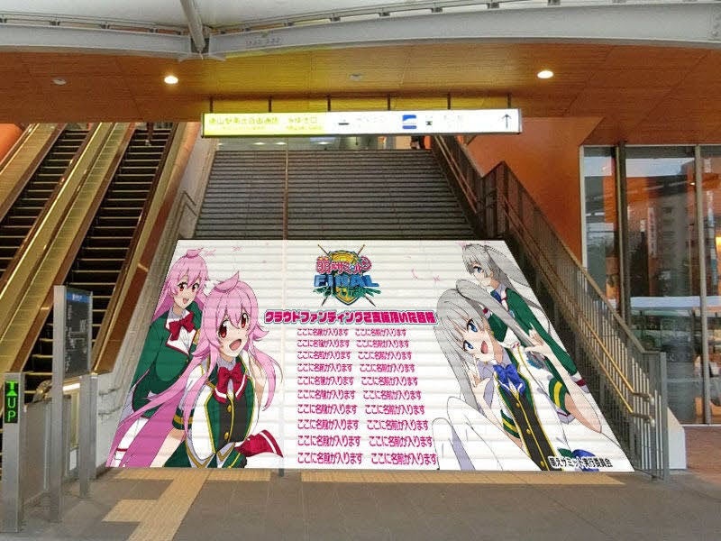 萌えサミットのイベント拠点の一角&電車・新幹線組の玄関口となる徳山駅の南北通路に、お名前入りの横長タペストリー(横180cm×縦100cm)を掲示するコースです。