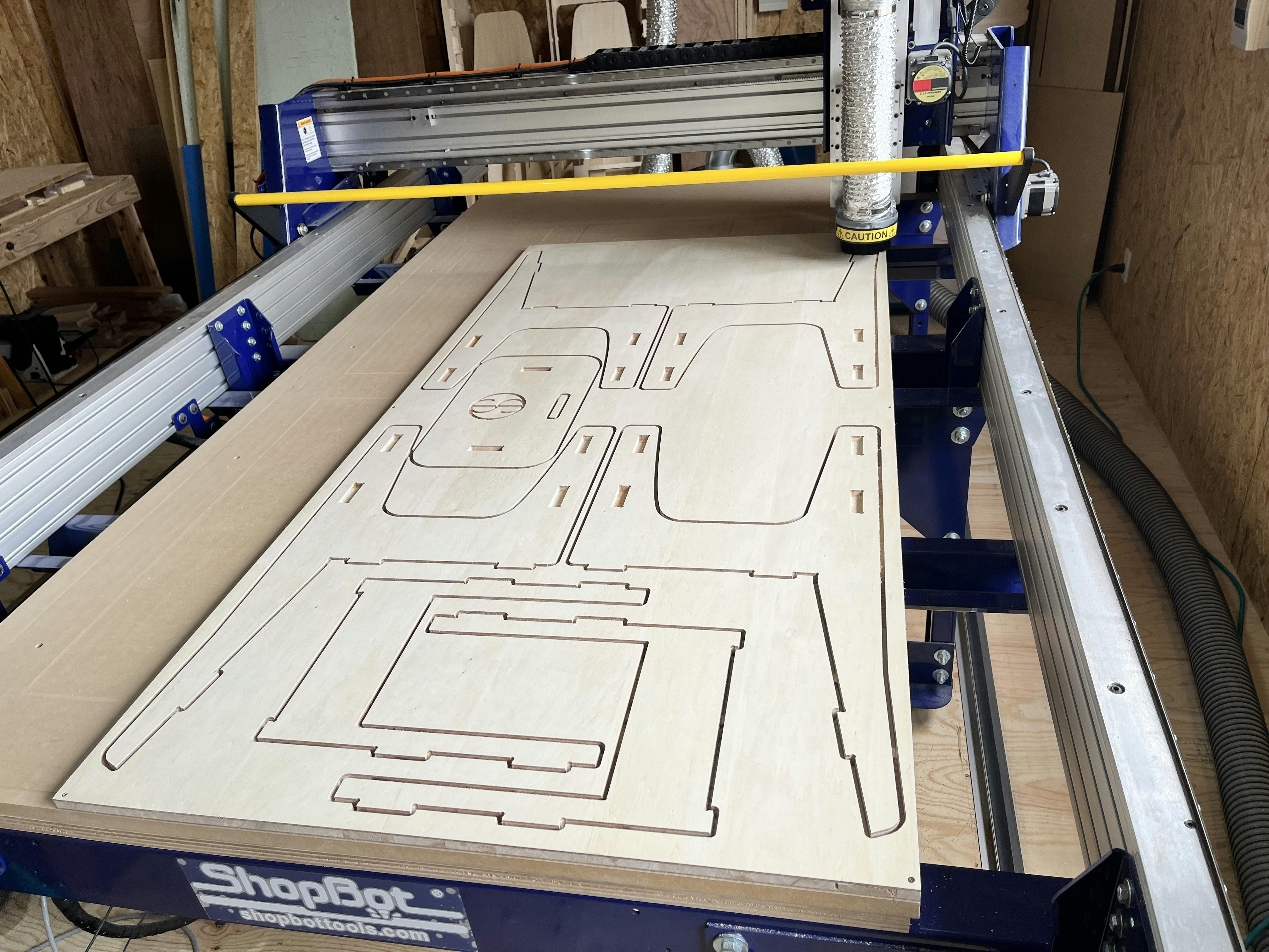 CNCルーターで切り出している所を実際に見学し、ヤスリをかけて組み立てる。