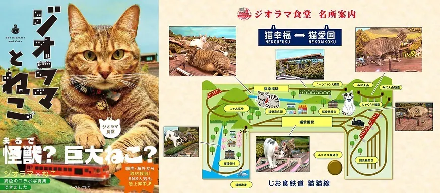 新型コロナウイルスの脅威が列島を席捲していた2020年6月10日、ジオラマ食堂・オーナーの寺岡さんは店の入口に捨てられていた生後間もない赤ちゃん猫を保護しました。その後、赤ちゃん猫を探しにやって来た母猫と子どもたち3匹を迎え入れ、やがて猫たちはジオラマのフィールドで自由に遊ぶ様になり、その動画をアップしたところ、驚異的な反響が広がり、コロナで客足が遠のいていたジオラマ食堂は見事に復活。「猫への恩返し」をミッションに保護猫シェルターとして事業を展開しています。
