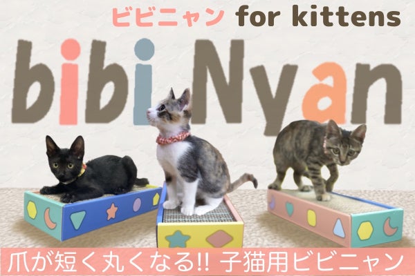 一般販売中の爪が削れる爪とぎボード「bibi Nyan ビビニャン」を購入いただいたお客さまの中から、なかなか使ってくれないというお声がありました。猫ちゃんは好みが激しく、爪とぎは特に使い慣れたモノを好む傾向があります。そこで、現在、生後約6ケ月までの子猫のときから、ビビニャンを使い始めることで、その課題を解決できるのではないかと考えました。