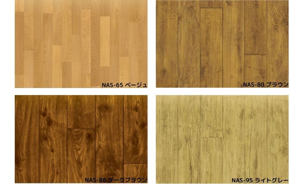 無垢板と間違えるほどのリアルで上質な木目デザインは、安価なブライト感から、落ち着いたダル感が高級感を漂わせ、暖かくソフトな感触を演出します。ほどよいクッション性と心地良い肌触りのパイル植毛は空気を含みますので、冬は暖かく、夏はサラッと快適、ベタベタしたり、足跡がついたりしまん。