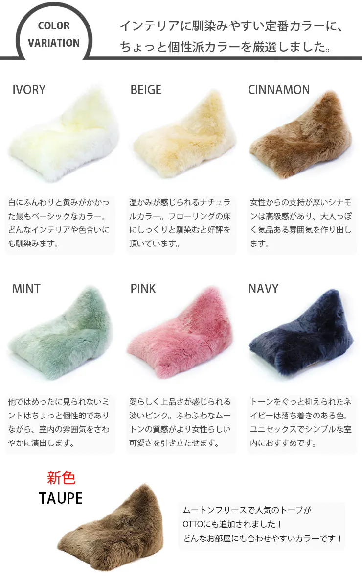 ①【20%OFF】超早割 キャンプファイヤー限定企画 ムートンビーズクッション OTTO 1個