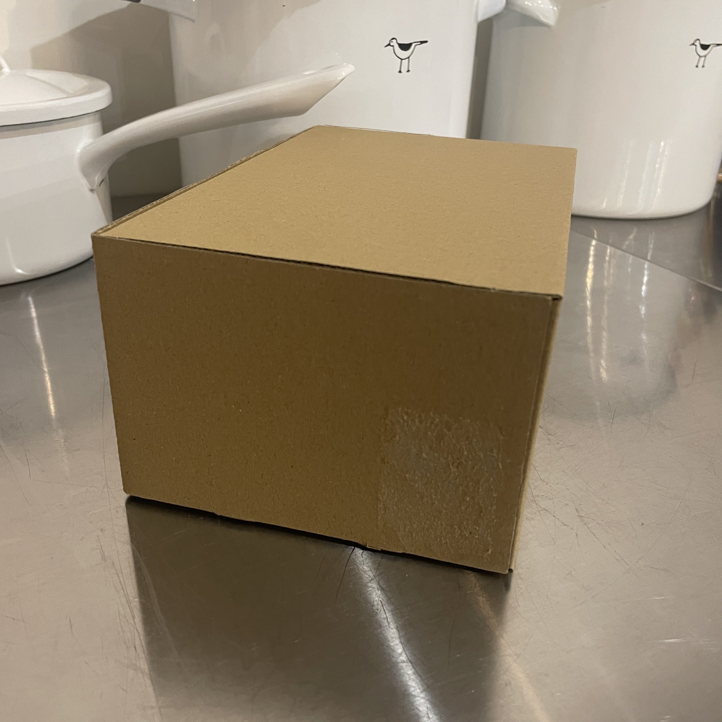 現在は、ガラス容器が届いた時の箱をそのまま使用しているため、ジャストサイズ。