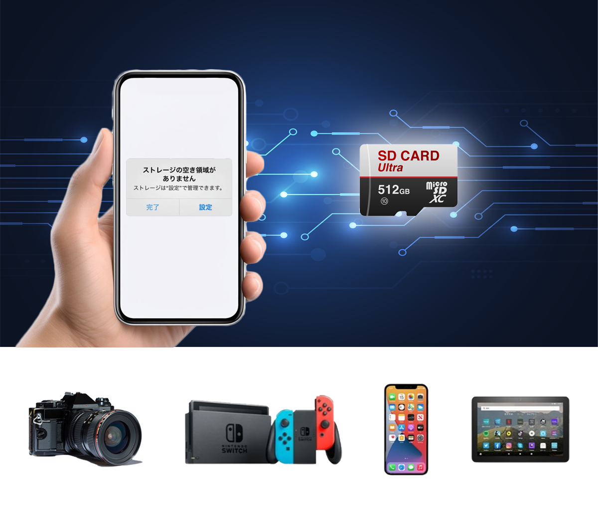 旅行や出張先で、デバイスの容量がいっぱいになっても安心です。