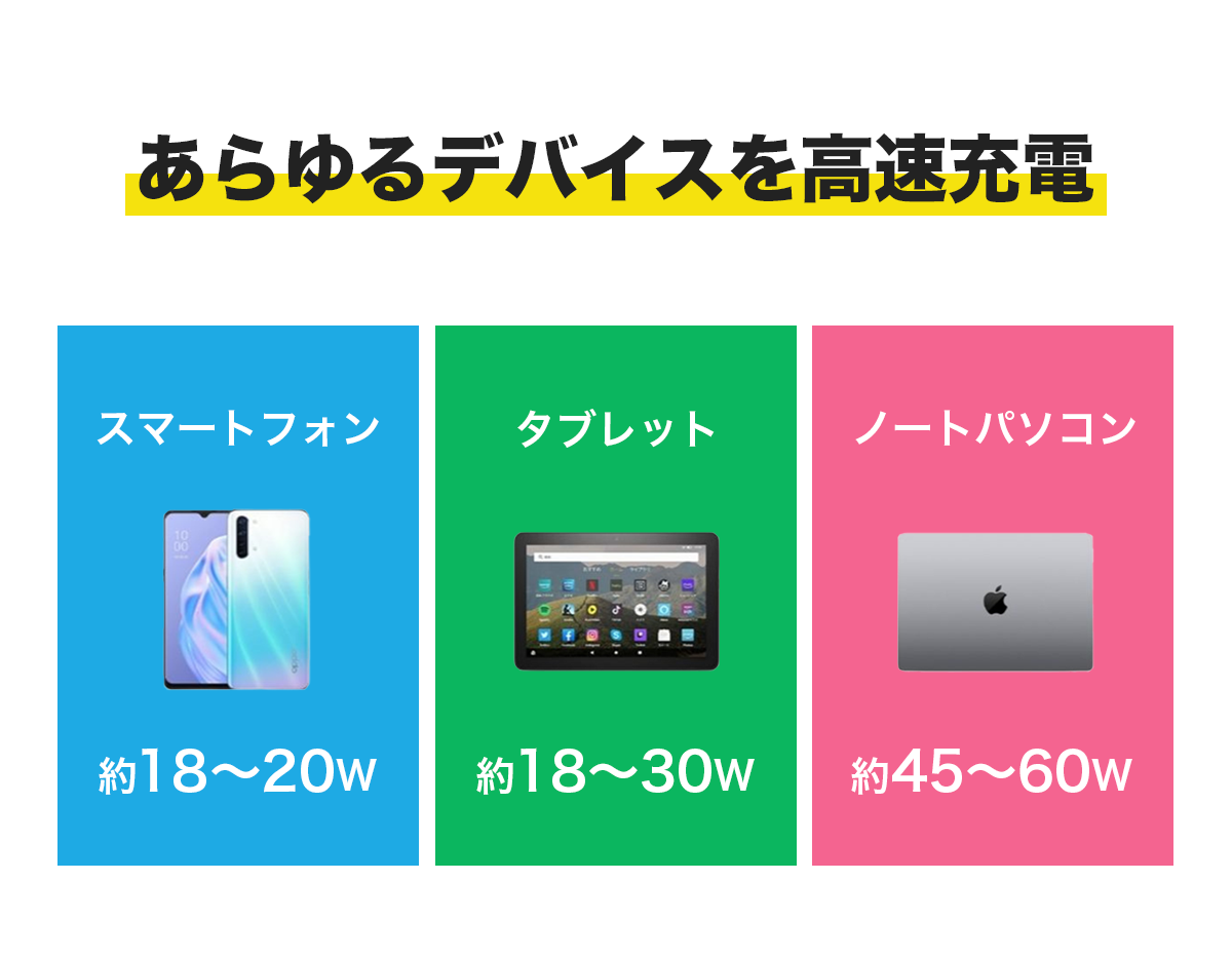 コンパクトなのに高出力だからどんなデバイスにも対応。