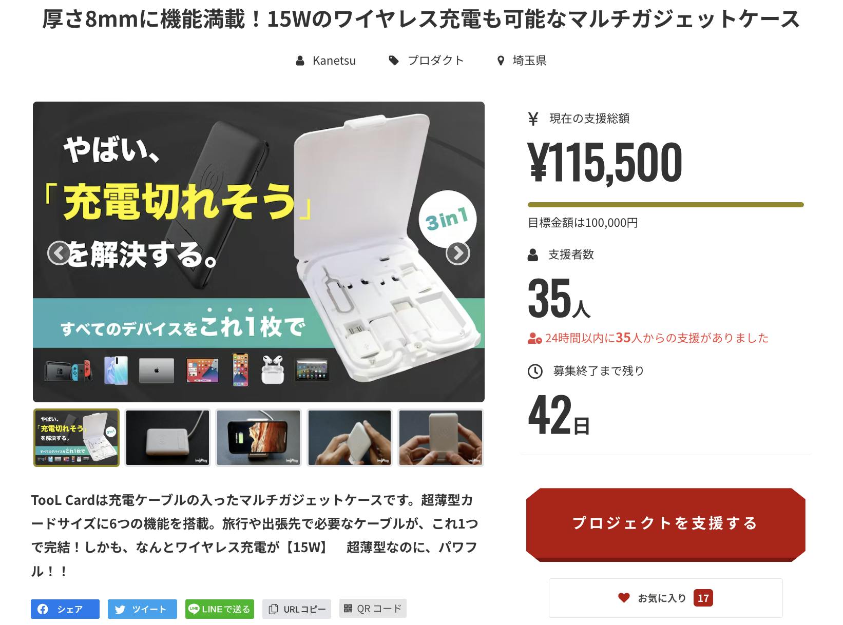 皆様に是非、【厚さ8mmに機能満載!15Wの高速ワイヤレス充電が可能なマルチガジェットケース】をお使い頂きたくプロジェクトを立ち上げさせて頂きました。是非、ご支援拡散をいただけますと幸いです。