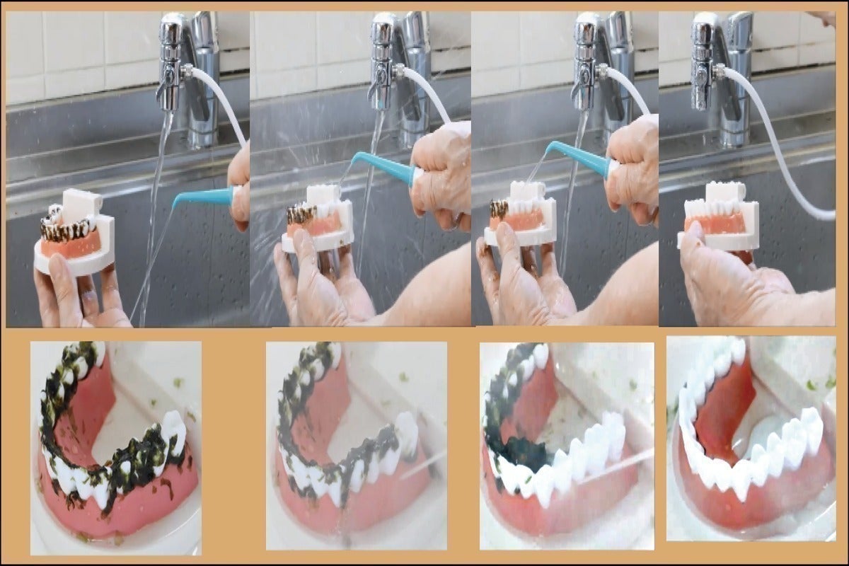 歯医者さんに行くといつでも、歯の磨き方を指導されます。歯ブラシで一生懸命磨いても、歯茎と歯の隙間に食べかすが挟まっています。歯間ブラシや爪楊枝で掃除するのは出来ない為、簡単に食べカスが取れる方法がないか探していました。最近、持ち運びのウォーター洗浄器が販売されていますが、タンクの水の清掃が大変だと思い、浴室、洗面所、台所の水栓を利用してストレスなしで出来るこのアイテムを探しました。私の奥さんが、オーラルクリーンを使用して、歯医者に行きました。いつもは、歯医者で歯磨きの指導を受けていましたが、今回は、歯の手入れがよくできているとほめられました。私も使っていて歯茎、歯の隙間に食べカスが無くなりました。皆様にも体験して頂きたく今回の発売になりました。