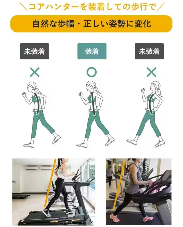 これにより普段かかと重心になり悪かった姿勢が、「三点バランス」を使った自然な歩幅で正しい歩き方に変わりました。
