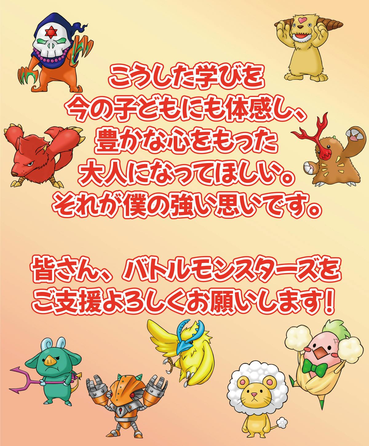 子どもたちがバトルモンスターズの進化に参加できる機会をリターンとしてふんだんに設けています。
