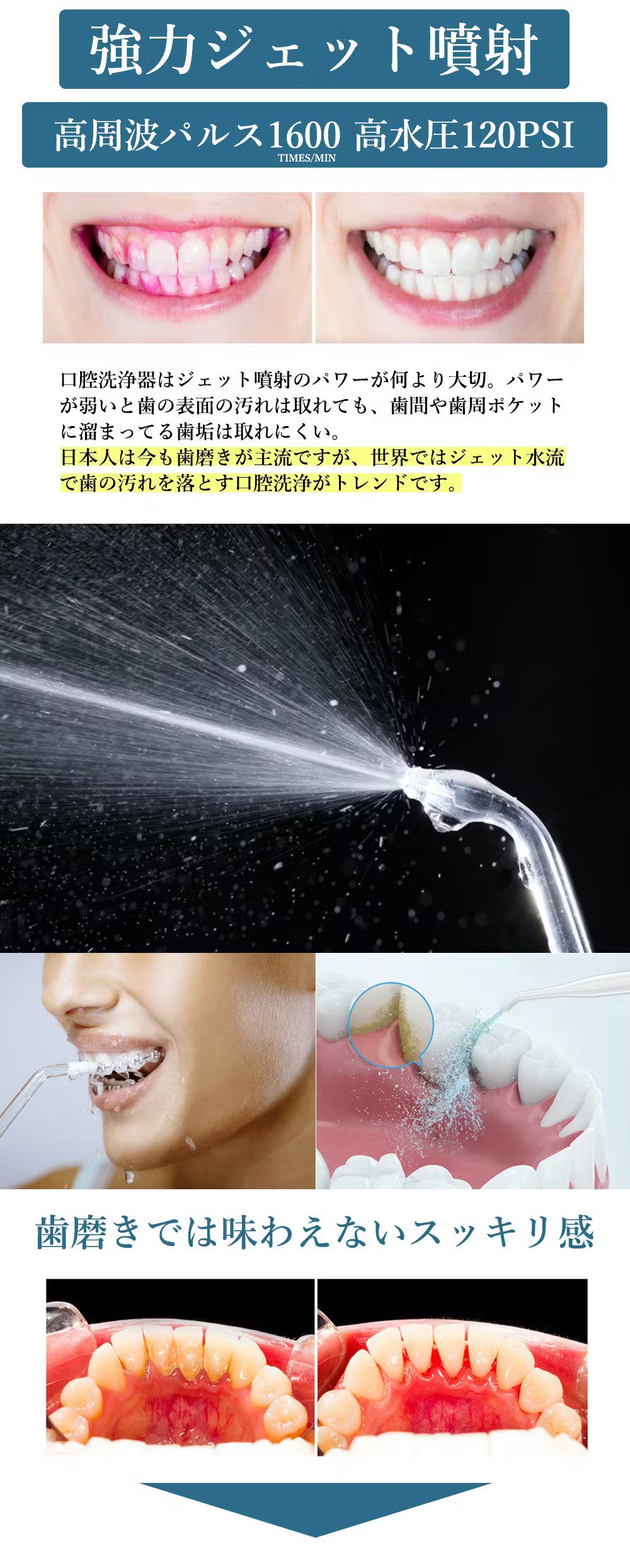 ・高周波パルス1600、高水圧120PSI、IPX7防水