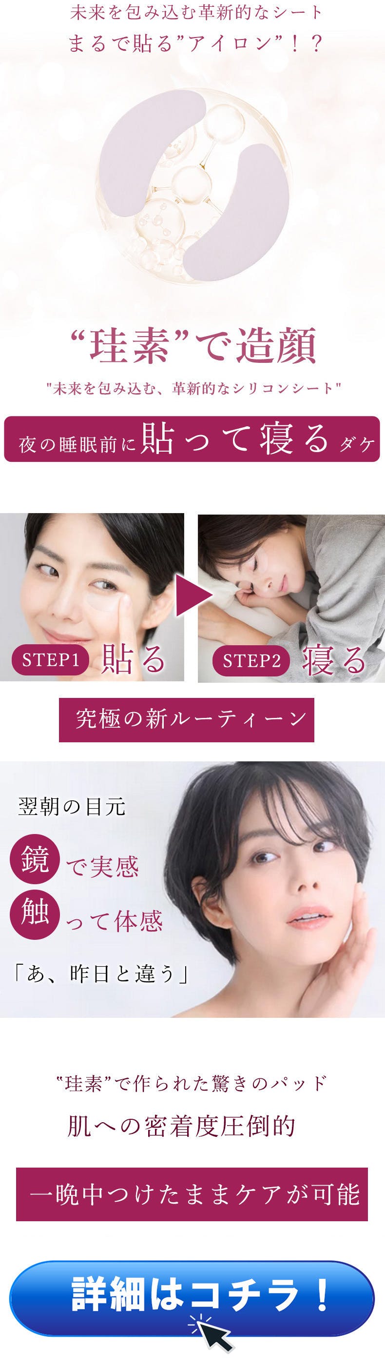 ②貼る→寝る!一晩かけてシワにアプローチ、翌朝実感