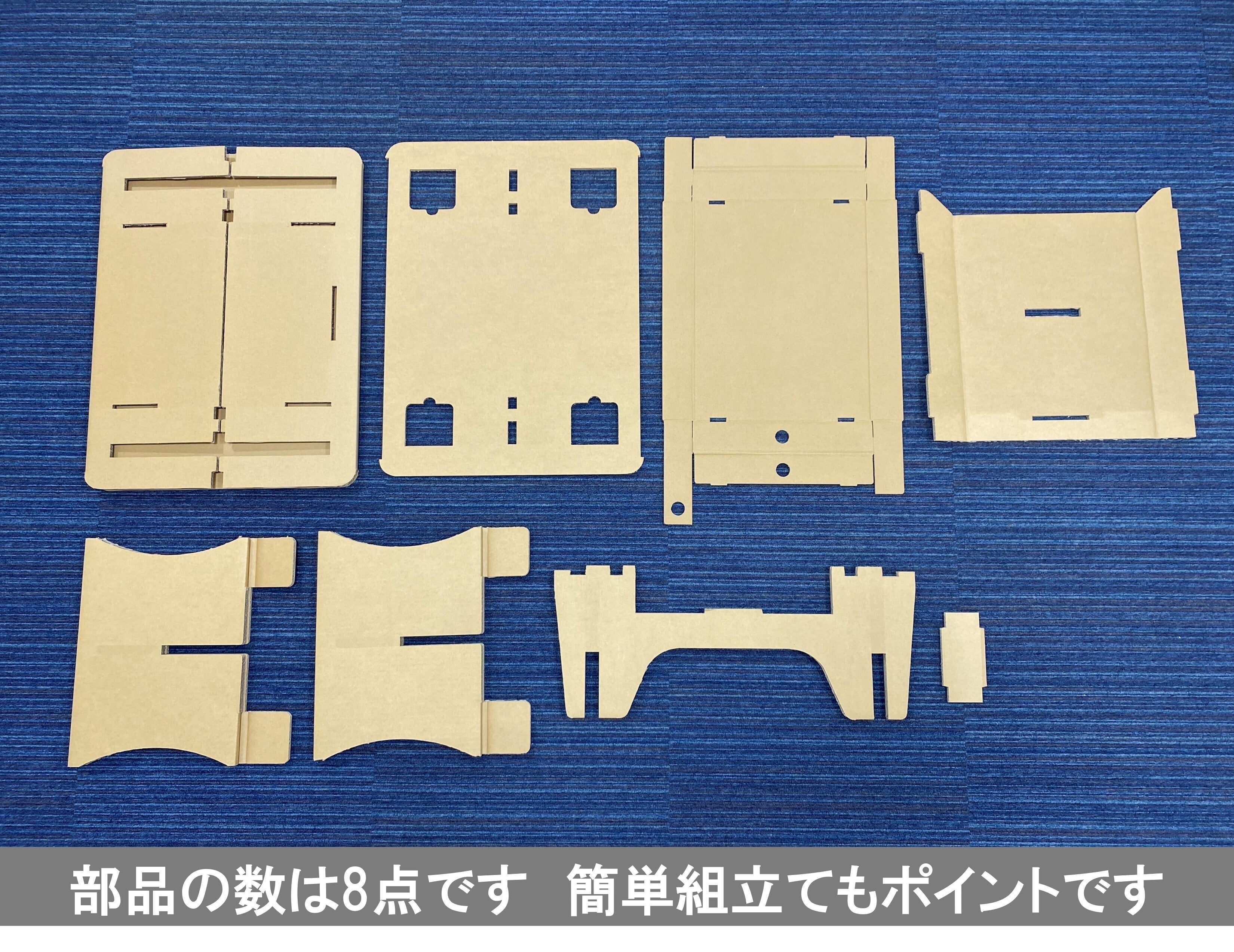 部品点数は出来るだけ少なくしています。挿す・折るなど簡単な作業で組立てが可能です。組立ては簡単ですが、弊社の技術者が工夫しており、完成後の強度は優れています。