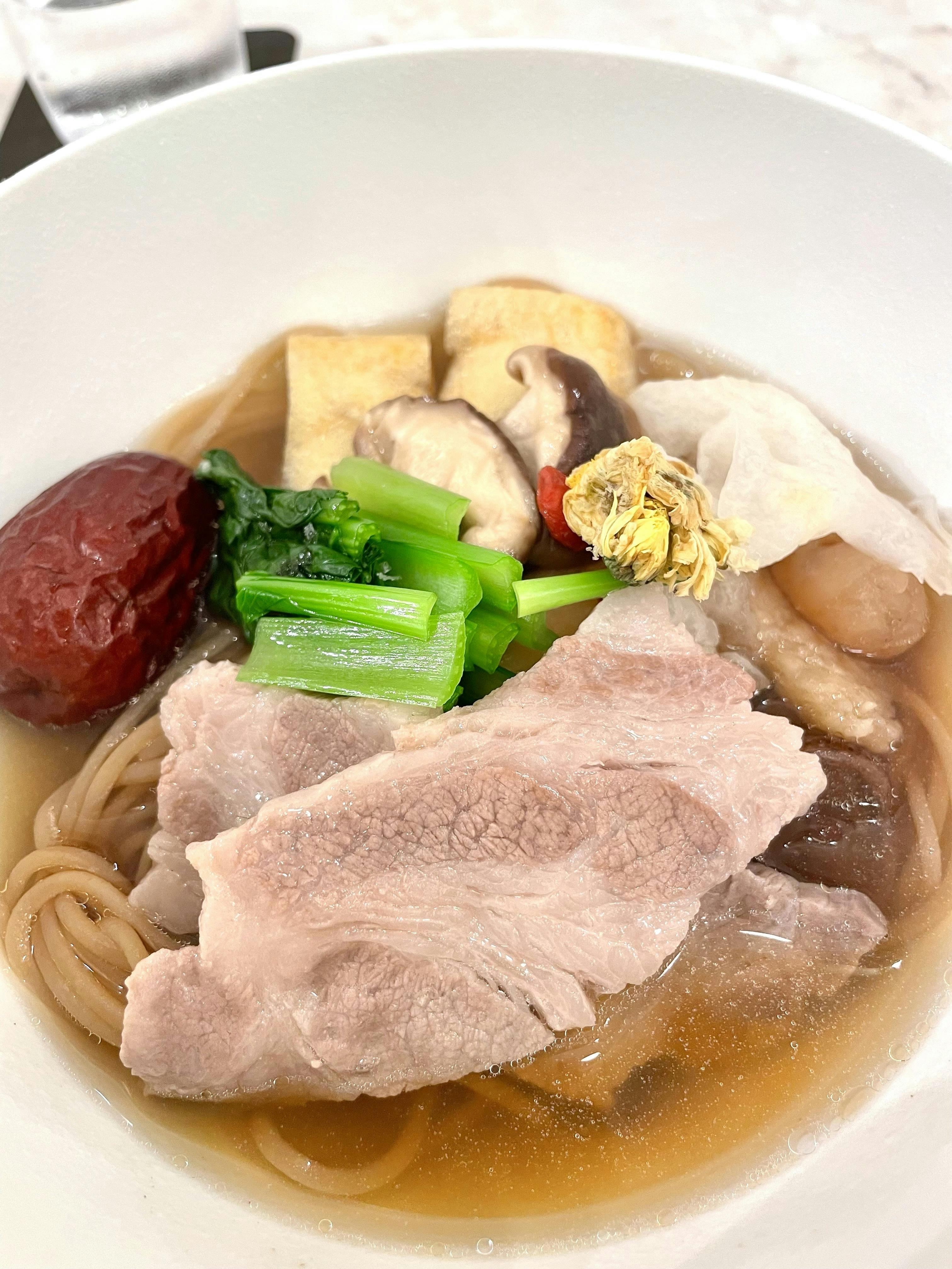 生薬のエキスをふんだんに使った唯一無二のスープレシピで、五臓六腑に染み渡るスープと共にお米の麺をすする有りそうで無かった薬膳ラーメンです。
