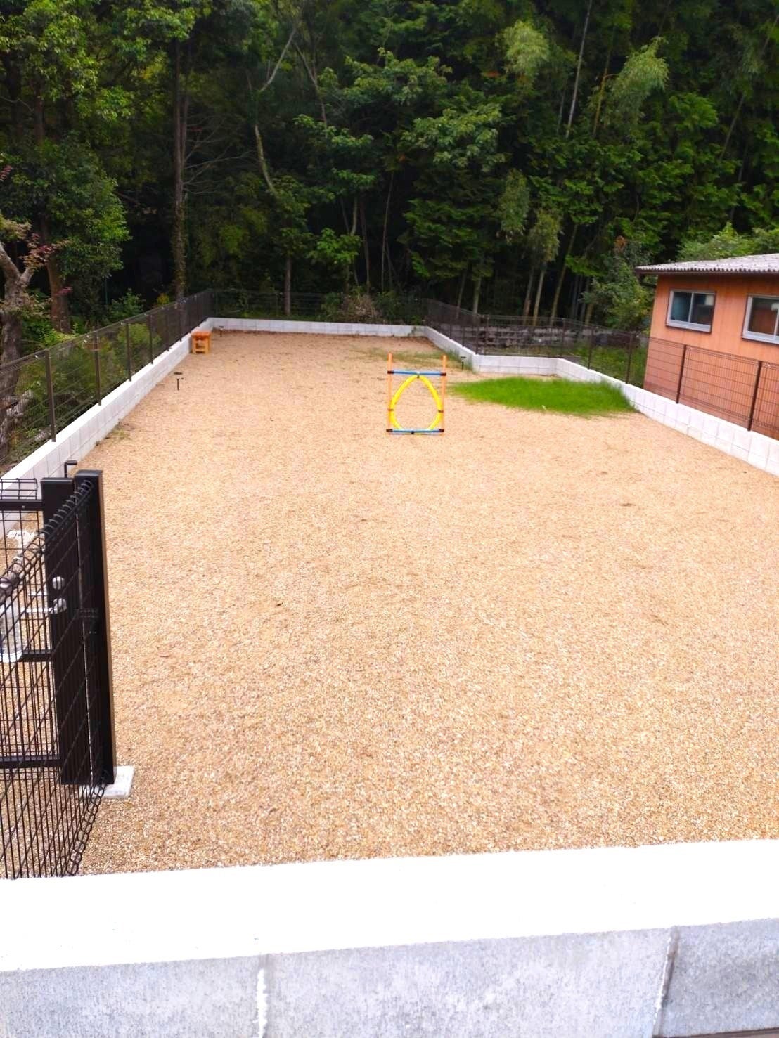又、芝がなく山砂利なので小型犬の肉球の間に山砂利が入っても芝で落とせるようにランの一部には芝を入れて