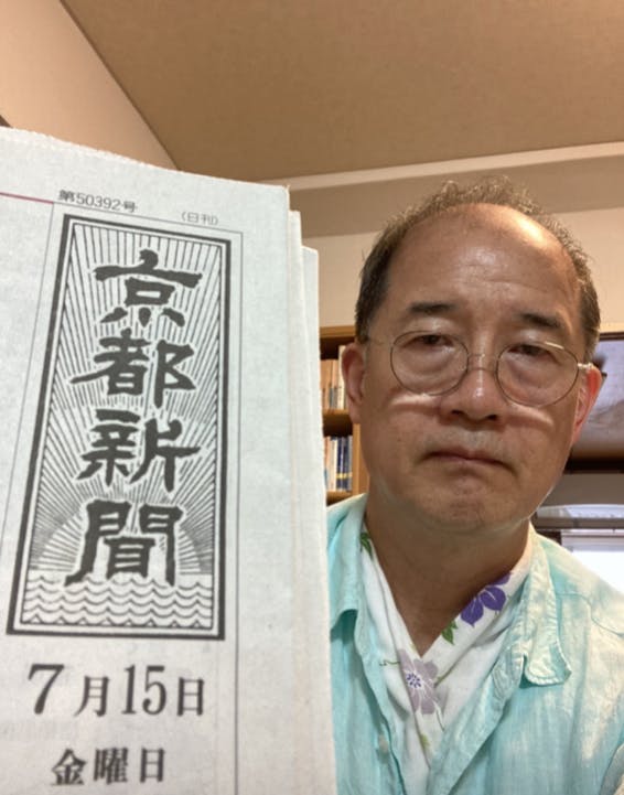 その時、協会のスタッフから7月15日の京都新聞の表紙を手に持って顔に近づけるように指示がありました。抗議しましたが、その後、iPadで識別写真を撮影されたのです。