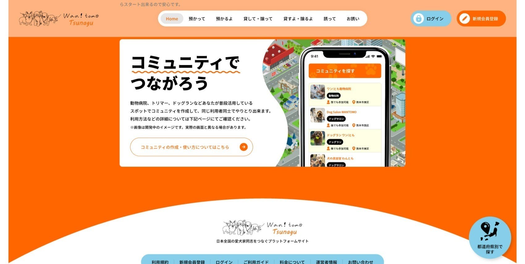 という方でも愛犬のために繋がるための機能が「あなたの街のコミュニティ(ワン!ともの家)」です。